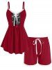 Plus Size Contrast Tunic Lace Up Sweetheart Collar T Shirt