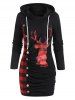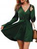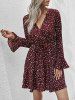 Drawstring Waist Leopard Long Sleeve Mini Dress