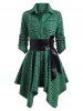 Plaid Belted Roll Tab Sleeve Handkerchief Dress