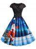 Pleated Christmas Santa Claus Elk Snowman Print Surplice Dress