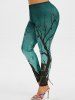 Halloween Black Cat Tree Print Plus Size Leggings