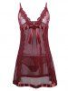 Plus Size Sheer Bowknot Cami Babydoll with Lace