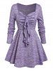 Plus Size Contrast Tunic Lace Up Sweetheart Collar T Shirt