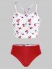 High Neck Cherry Print Crisscross Back Reversible Tankini Swimwear