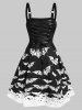 Grommet Lace up Halloween Skeleton Hand Dip Hem Dress