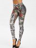 Halloween Flower Skull Eagle Print High Waisted Leggings