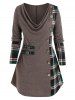Plus Size Plaid Cowl Neck Buttoned Buckle Tunic Tee