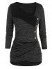 Plus Size Space Dye Crossover Skew Collar Ruched Tee