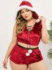 Plus Size Lace Up Velvet Hooded Crop Top and Shorts Set