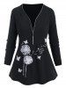 Plus Size Floral Butterfly Print Half Zipper Tee
