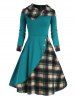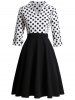Polka Dot V Notched Rolled Sleeves High Rise Dress