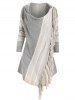 Cowl Neck Striped Fringed Hem Convertible Sweater