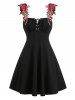 Plus Size Cold Shoulder Hanky Hem Frilled Sailor Button Dress