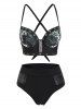 Grommets Fishnet Panel Branch Print Underwire Bikini Swimwear