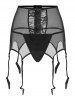 Sheer Mesh Lace Panel Garter Belt Plus Size T back