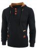 Drawstring Color Block Half Button Hoodie