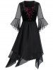 Plus Size Sheer Mesh Layered Lace Up Handkerchief Gothic Dress