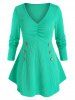 Plus Size Mock Button Ruched Curved Hem Sweater