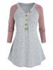 Plus Size Two Tone Raglan Long Sleeve Tunic Tee