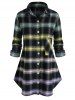 Plus Size Plaid Curved Hem Button Up Tunic Shirt