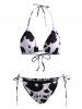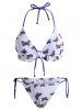 Halter Butterfly Print Tie Side Bikini Swimwear