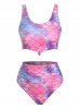 Scale Print Knot Ruched Mermaid Tankini Swimwear