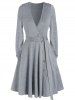 Deep V Neck Pockets Belted Mock Button Mini Dress