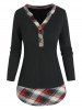 Plaid Print Faux Twinset Henley Sweater