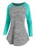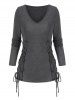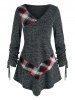 Cinched Sleeve Plaid Heathered Knitted Tee
