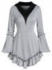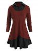 Plus Size Asymmetric Cowl Neck Colorblock T Shirt