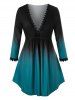 Plus Size Plunging Neck Ombre Color T Shirt