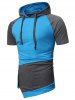 Hooded Zipper Slit Asymmetric Contrast T shirt