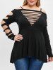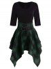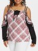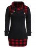 Plus Size Checked Panel Cowl Collar Button T Shirt