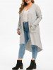 Pockets Button Up Ribbed High Low Plus Size Cardigan