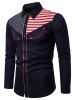 American Flag Star and Stripes Embroidery Contrast Trim Shirt