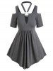 Plus Size Keyhole Cold Shoulder O Ring T Shirt
