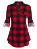 Plaid Print Half Zip Cuffed Sleeve Blouse