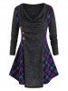 Plus Size Space Dye Plaid Draped Curved Hem Tee
