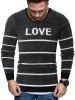 Letter Striped Crew Neck Fuzzy Sweater