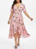 Plus Size Plunge Split Sleeve Ruffled Floral Dress