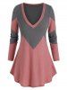 Plus Size Bicolor Two Tone Plunging Tunic Sweater