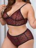 Plus Size Plunge Polka Dot Lingerie Sheer Mesh Bra Set