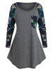 Plus Size Cartoon Cat Raglan Sleeve Pocket T Shirt