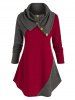 Plus Size Two Tone Foldover Curved Hem Tunic Sweater