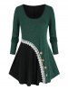 Plus Size Guipure Lace Two Tone Buttoned Tunic Tee