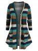 Plus Size Striped Button Front Knitted Pocket Cardigan
