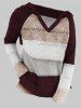 Plus Size Colorblock Raglan Sleeve Hooded Slit Sweater