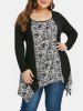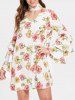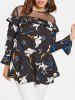 Plus Size Sheer Mesh Floral Bell Sleeve Blouse