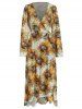 Long Sleeve Sunflower Print Wrap Dress