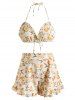 Halter Lemon Print Boyshorts Bikini Swimwear